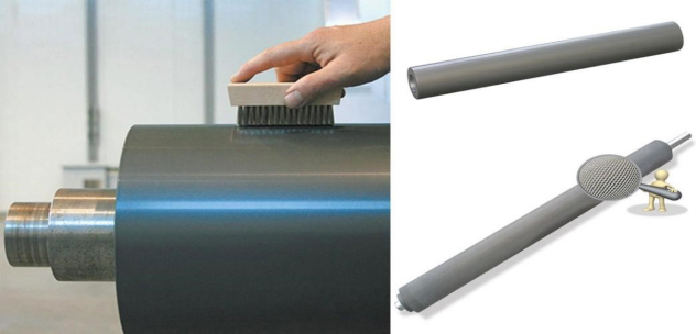 網(wǎng)紋輥是柔印機(jī)中重要的部件之一,輥?zhàn)訐锨葘δ珜拥木鶆蛐杂泻艽笥绊?。?shí)驗(yàn)表明采用碳纖維材料可使網(wǎng)紋輥具有很低的轉(zhuǎn)動(dòng)慣量、較高的剛度,重量輕、動(dòng)能小。采用這種先進(jìn)材料后,在承印材料上能獲得均勻的墨膜。